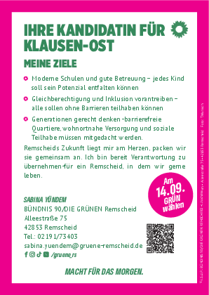 Kontakt: sabina.yuendem@gruene-remscheid.de